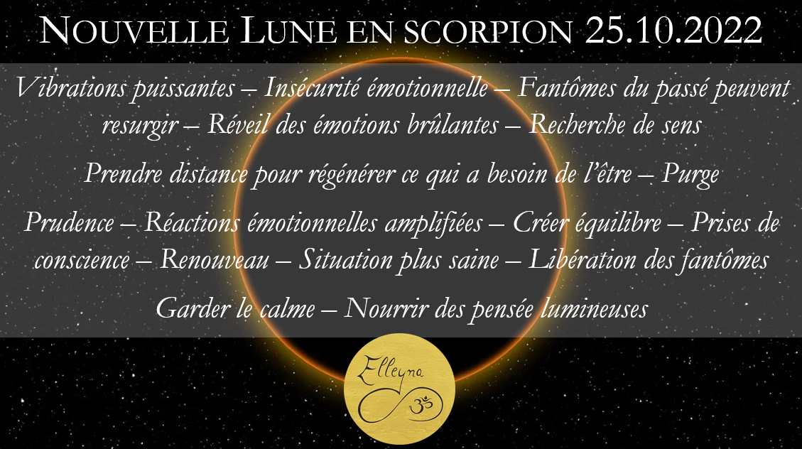 Cette nouvelle lune marque un temps fort. Nous pourrions être troublés, tourmentés par des sujets qui réveillent des émotions brûlantes ou nous demande de prendre conscience de porter à la lumière des peurs enfouies.