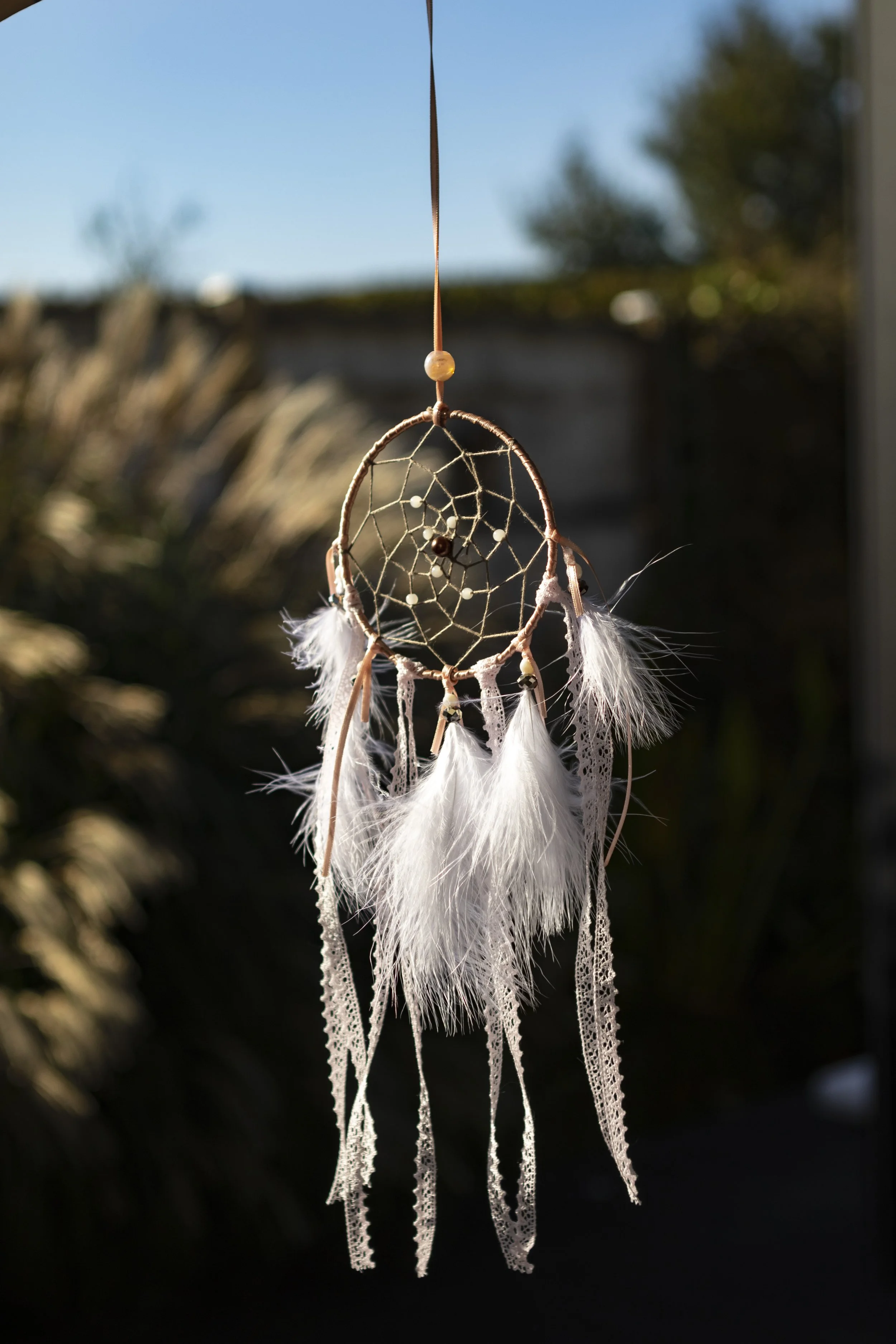 Un attrape-rêves confectionné par mes mains, idéal pour une décoration épurée et zen.